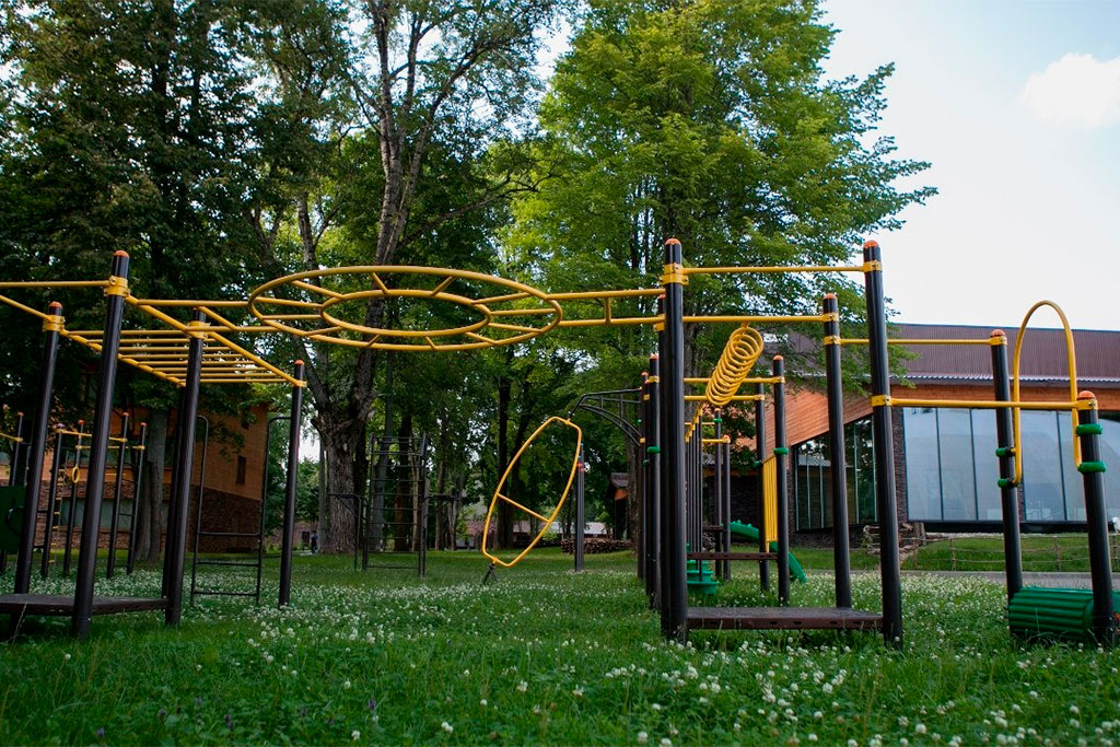 На территории загородного отеля есть несколько спортивных площадок. Среди них баскетбольная, волейбольная и футбольная площадки, теннисные корты. Все площадки имеют необходимое оборудование, которое позволяет с комфортом играть в любимые игры.